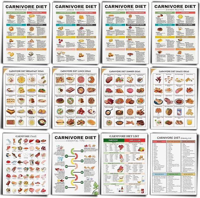 Maximize your carnivore diet journey with the Sinload 12 Pcs Carnivore Diet Food List Poster set. Crafted by nutritionists, these posters are designed to enhance your dietary experience with clear visuals and comprehensive lists, ensuring you stay on track with ease. Elevate both your nutritional insights and your home decor today!