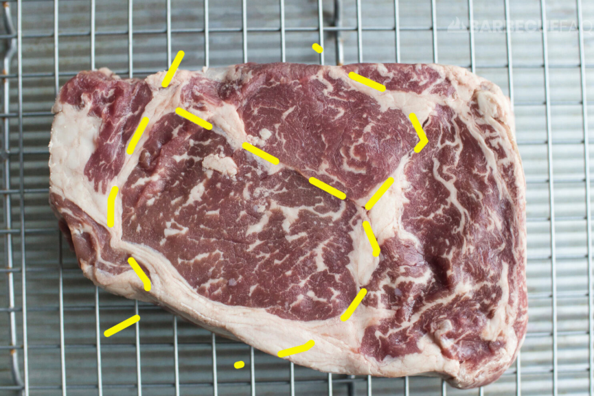 - Identify the grain by spotting the direction of the muscle fibers.